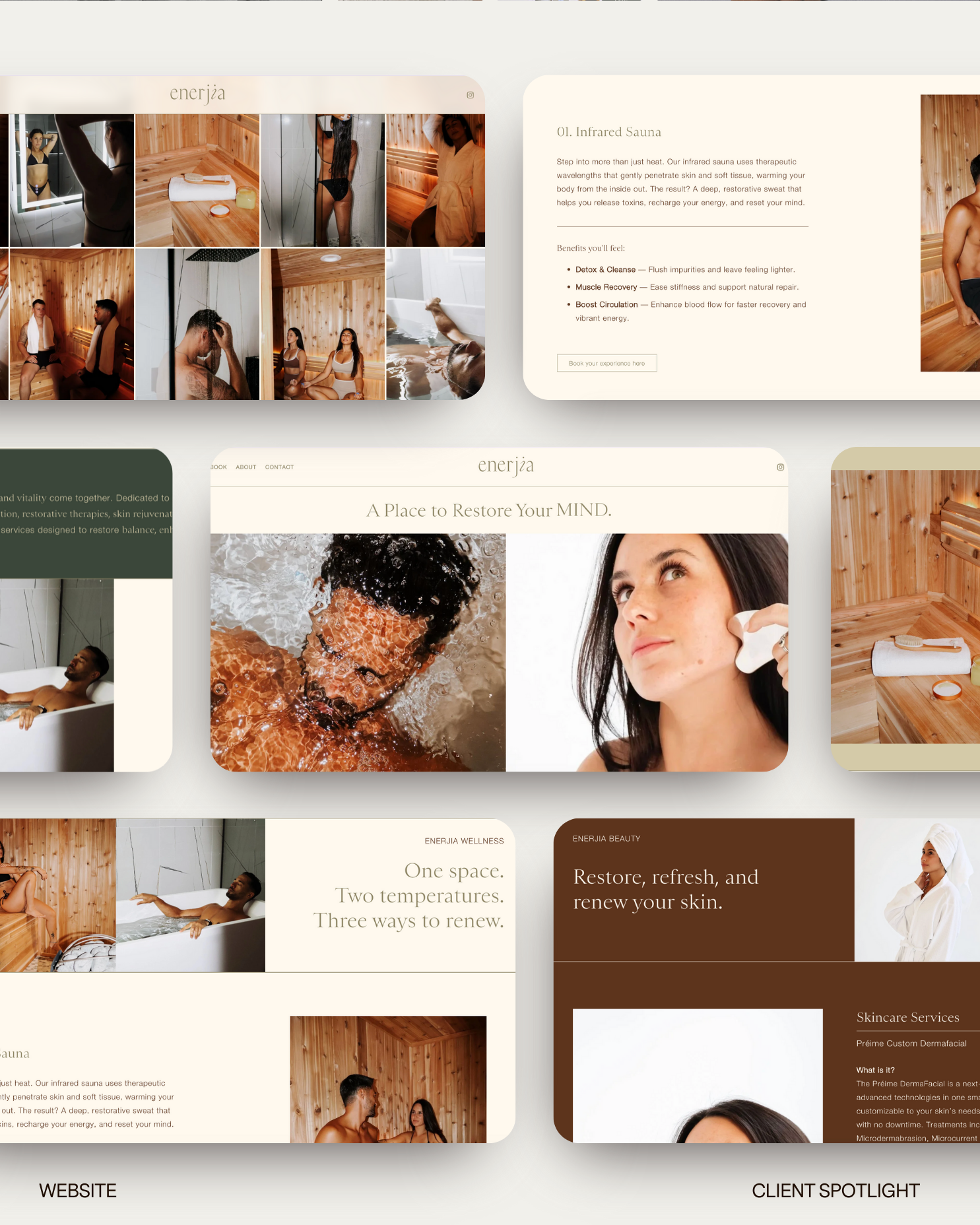 EnerJia partnered with Bean Branding to bring clarity and direction to their vision — a wellness sanctuary where people can relax, restore, and embrace a healthier, more confident life. From the ground up, Bean Branding provided marketing consulting to outline exactly what was needed to start the business from a strategic standpoint — from brand positioning and messaging to social media presence and advertising plans. They developed a complete brand identity and launch strategy that not only reflected EnerJia’s mission but also positioned them for long-term success in the wellness market.