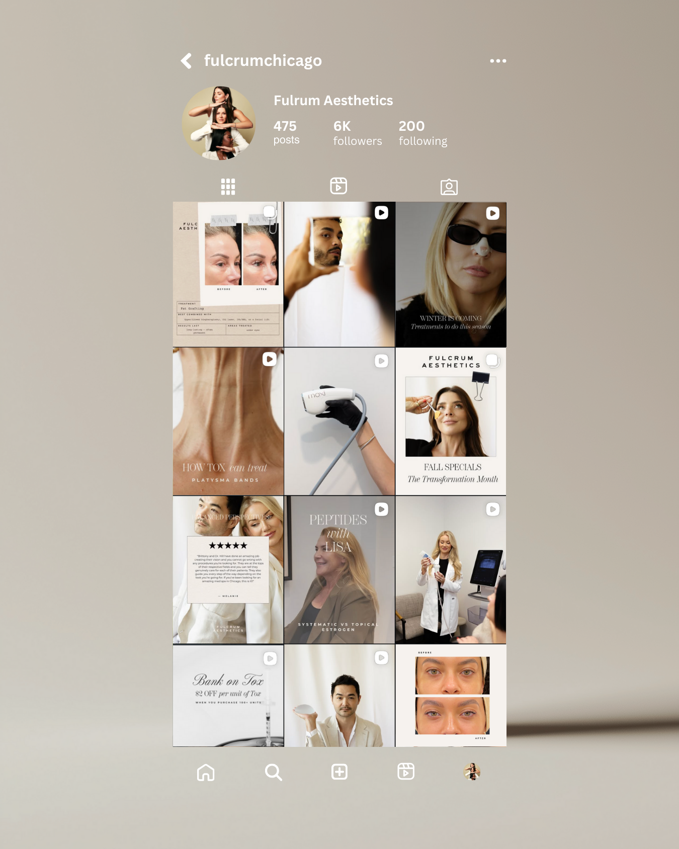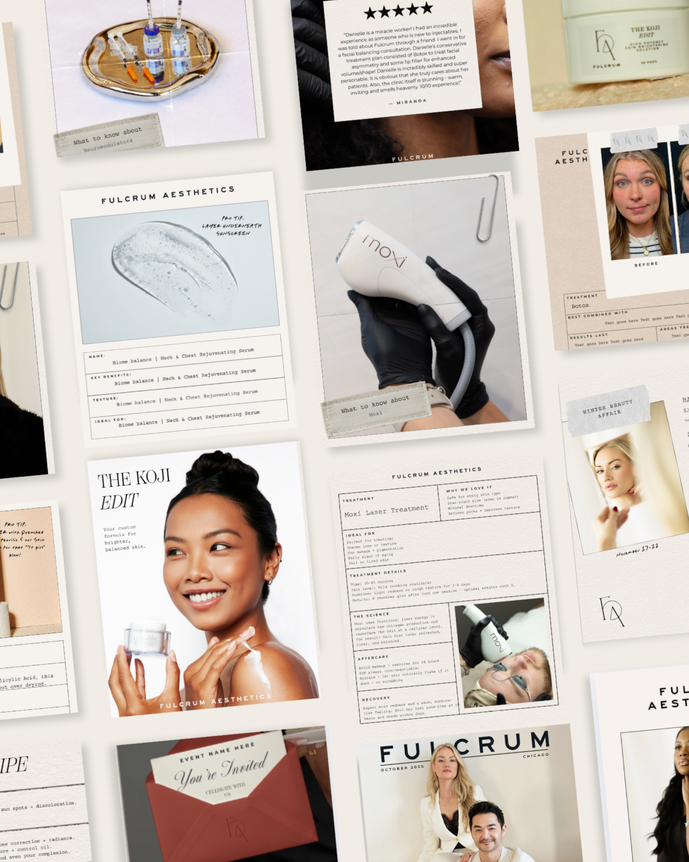 Strengthen Fulcrum Aesthetics’ brand consistency and visibility through elevated design, in-spa alignment, and ongoing social media management.