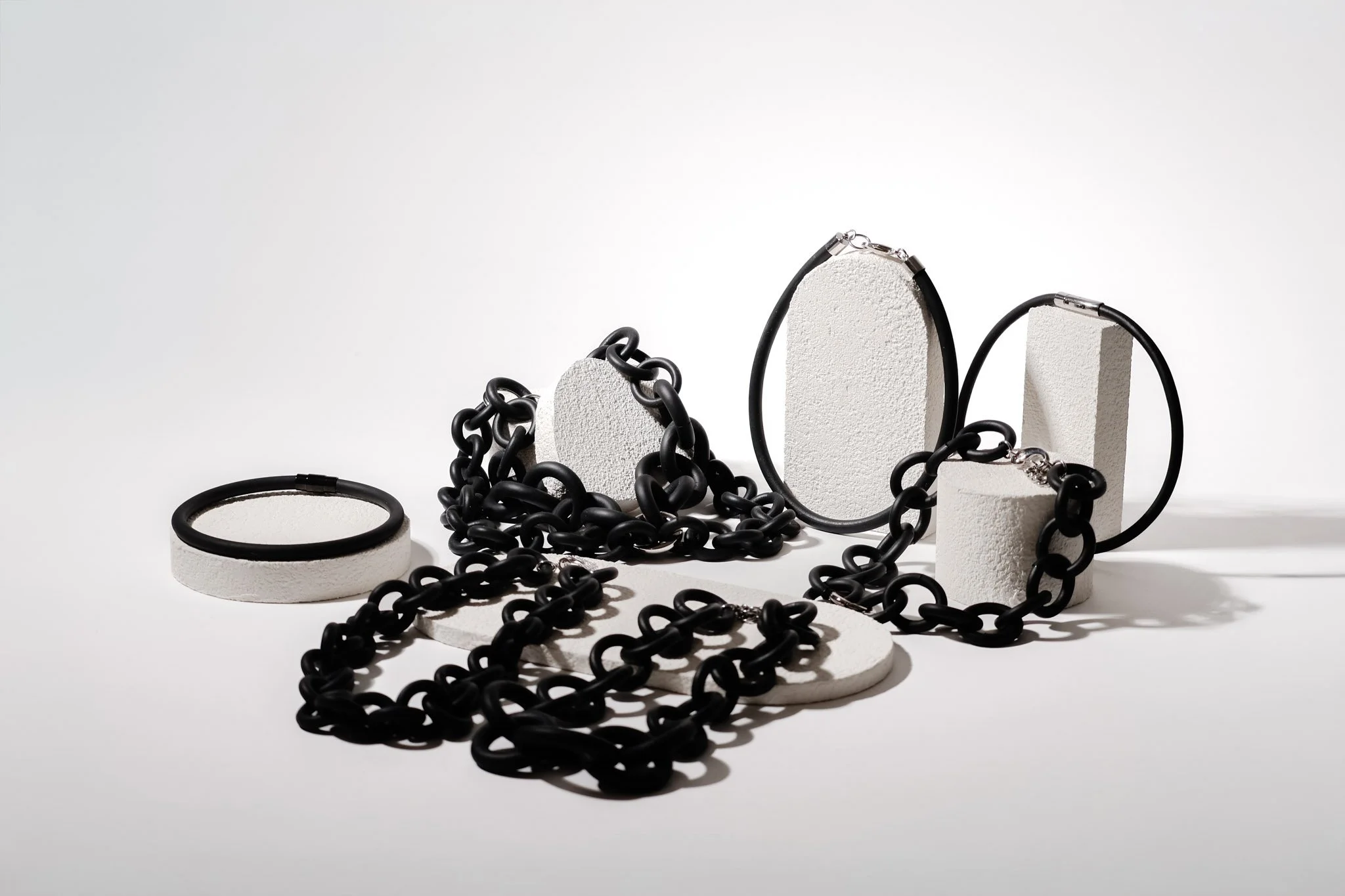 NYET Jewelry is anything but ordinary. Designed by French designer Delphine Pontvieux and handmade in Chicago, the brand redefines luxury through its signature rubber jewelry — weightless, sculptural pieces that challenge traditional notions of fine adornment. Seen on the runway and featured in Modern Luxury Chicago, NYET exists at the intersection of innovation, fashion, and craftsmanship.