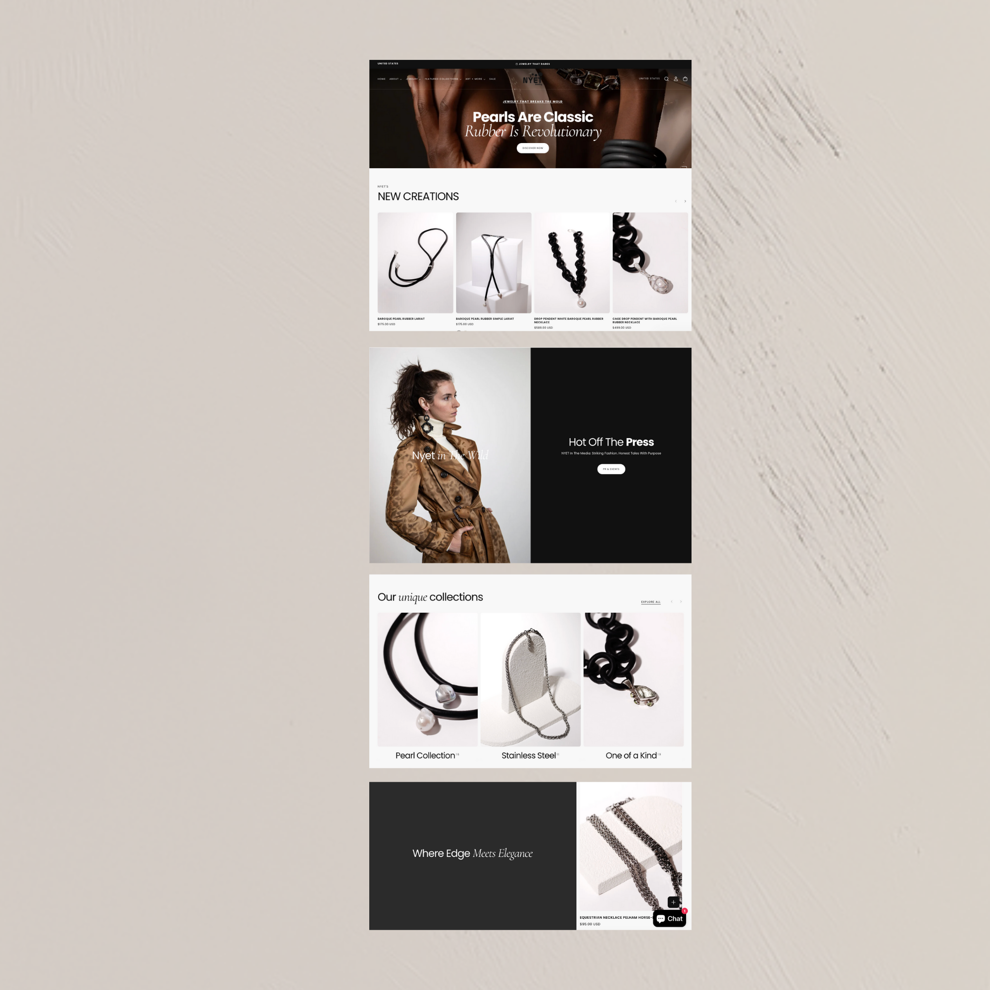 Recognizing that jewelry this distinctive deserved an equally elevated presentation, NYET partnered with Bean Branding to refine and elevate its visual identity. Together, we developed full creative direction, including a comprehensive product photoshoot and a complete website redesign. The result is a digital experience that honors the brand’s artistry, highlights the uniqueness of each piece, and positions NYET Jewelry to connect with a more discerning, luxury-focused audience.